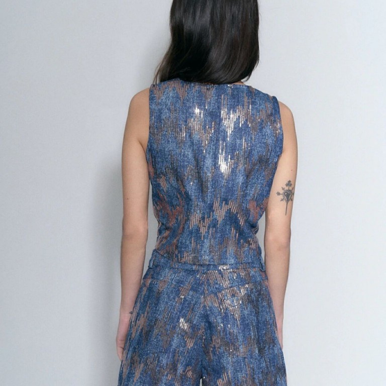CHALECO DENIM BORDADO CON LENTEJUELAS.ES ENTALLADO