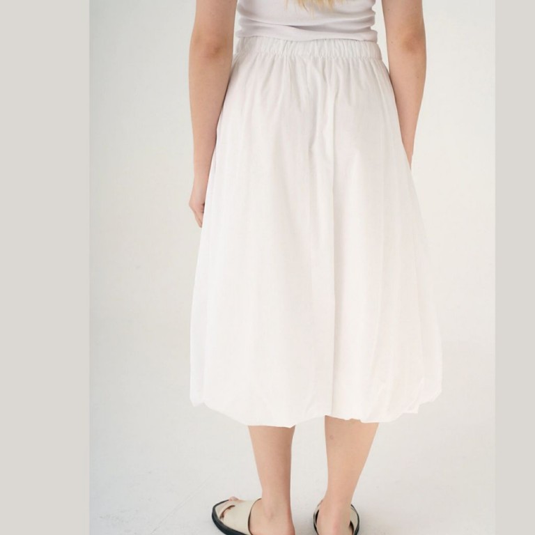 Pollera largo midi de rayon poplin con forrería interna. Tiene elástico en la cintura.