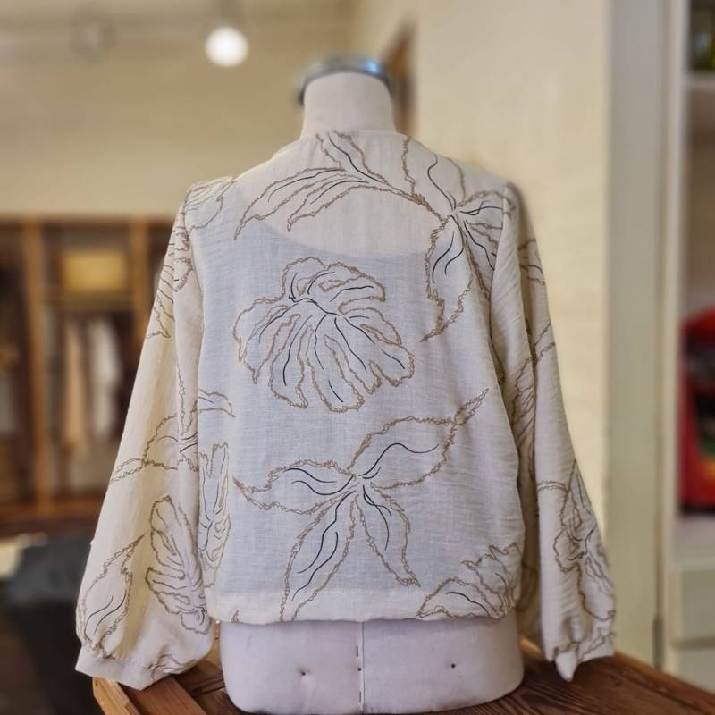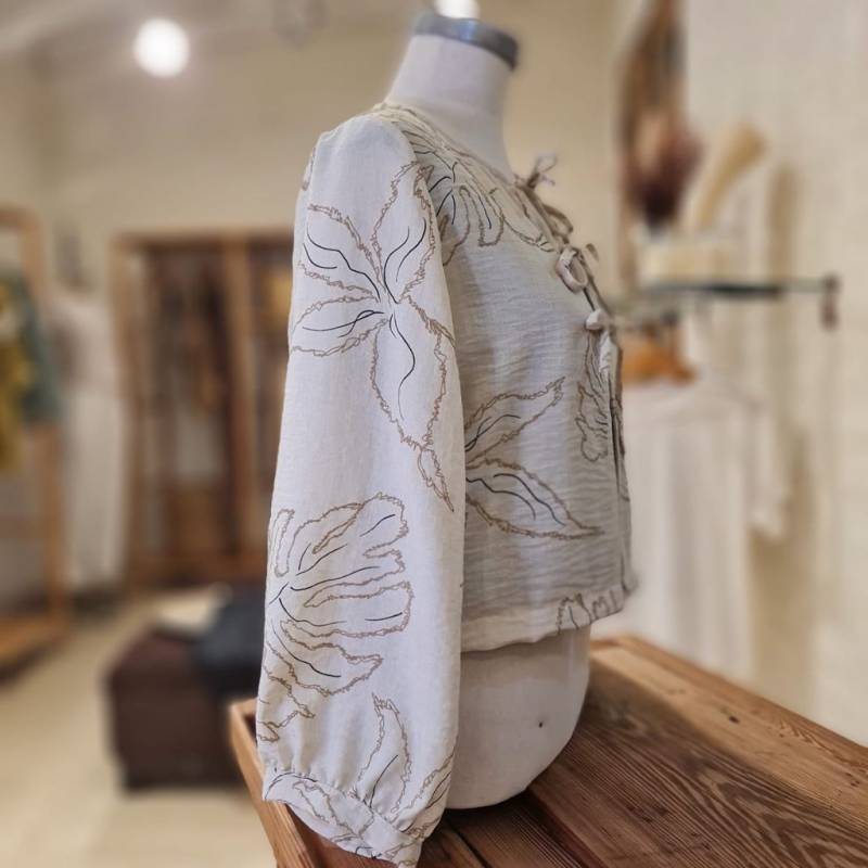 BLUSA TIPO CASACA CON LAZOS PARA ATAR.MANGA CON PUÑO ABULLONADO.
